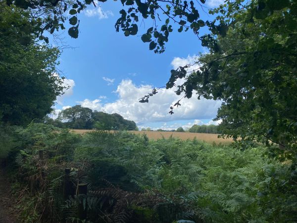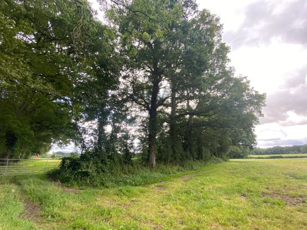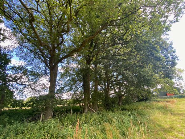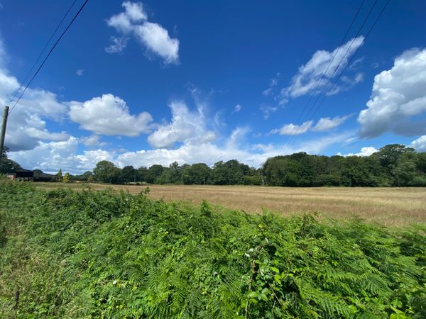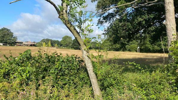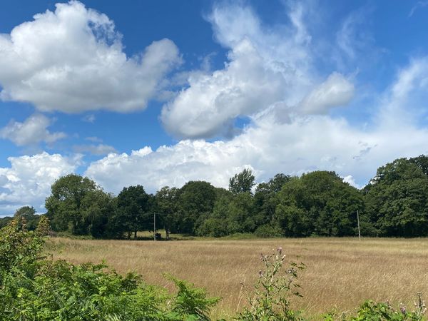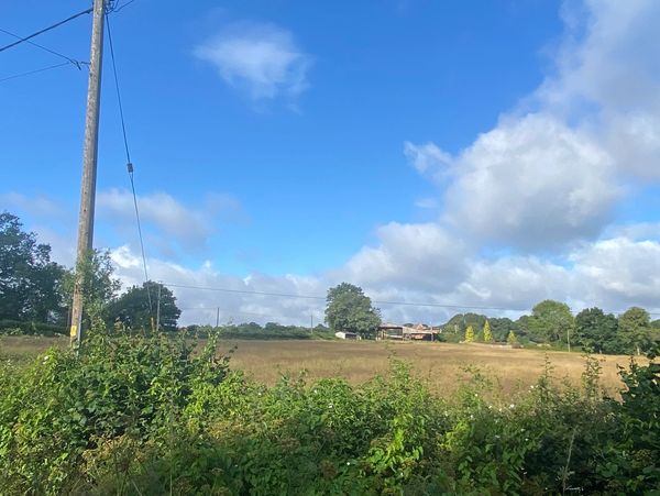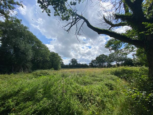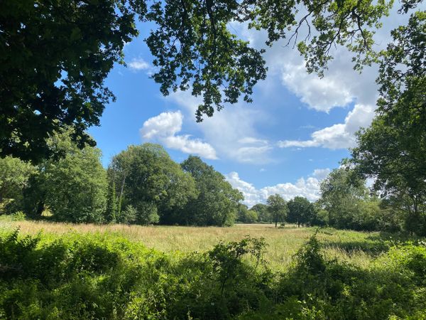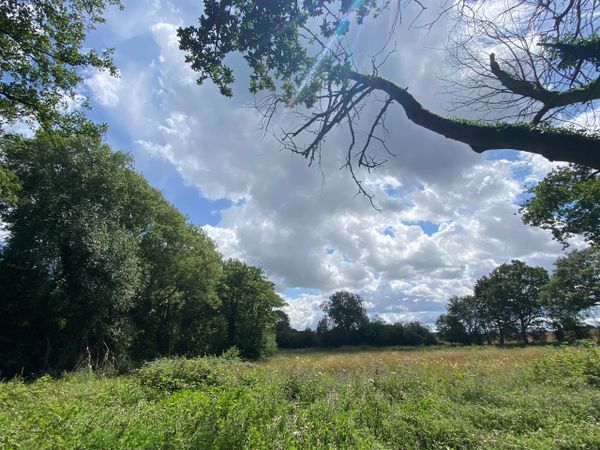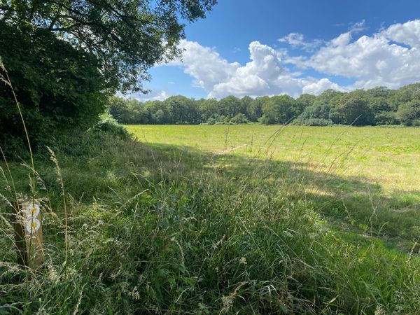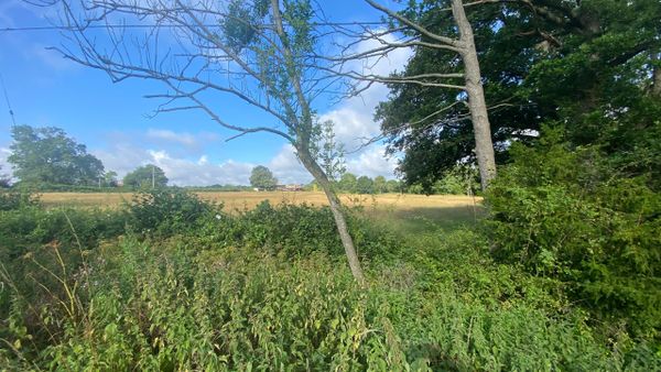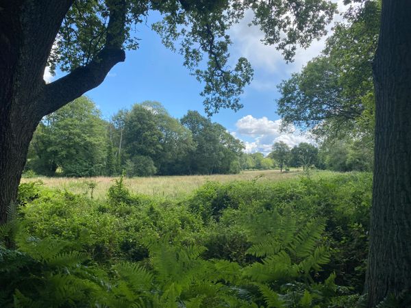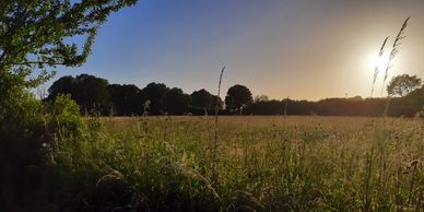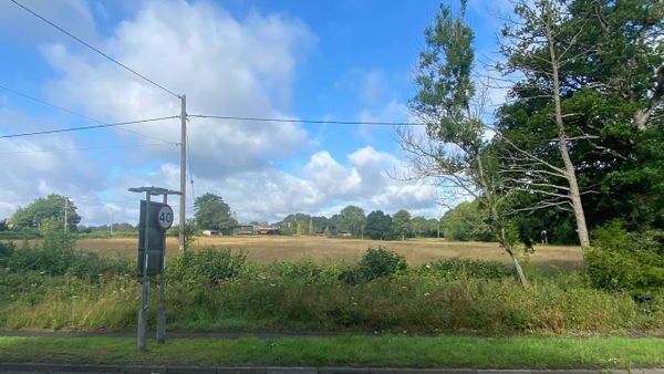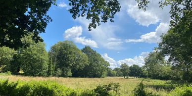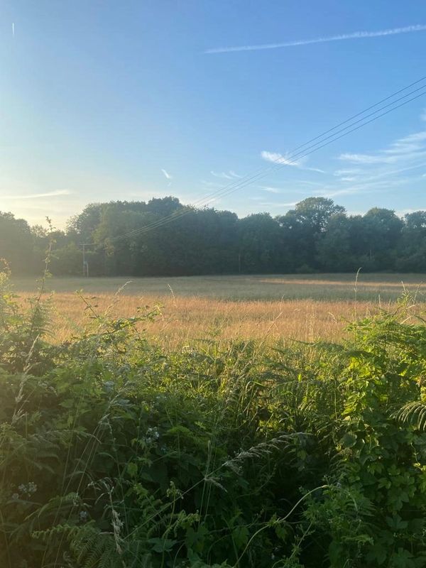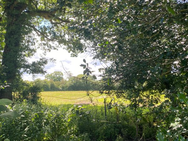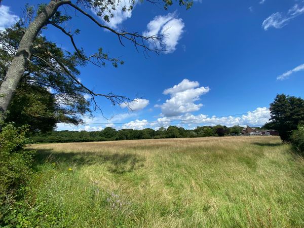 Photo (L): 21st June, 2023. Taken from the top of Ron Ward's Meadow (SSSI) looking south. An application site is on the other side of the first tree line at the south end of the meadow.