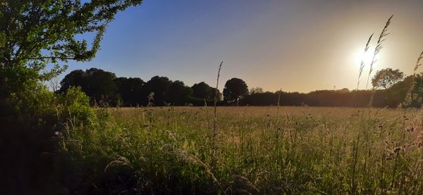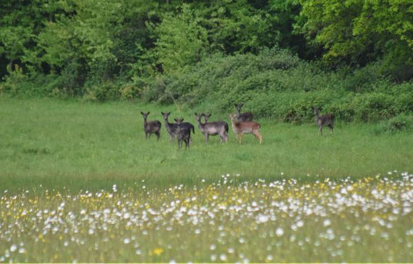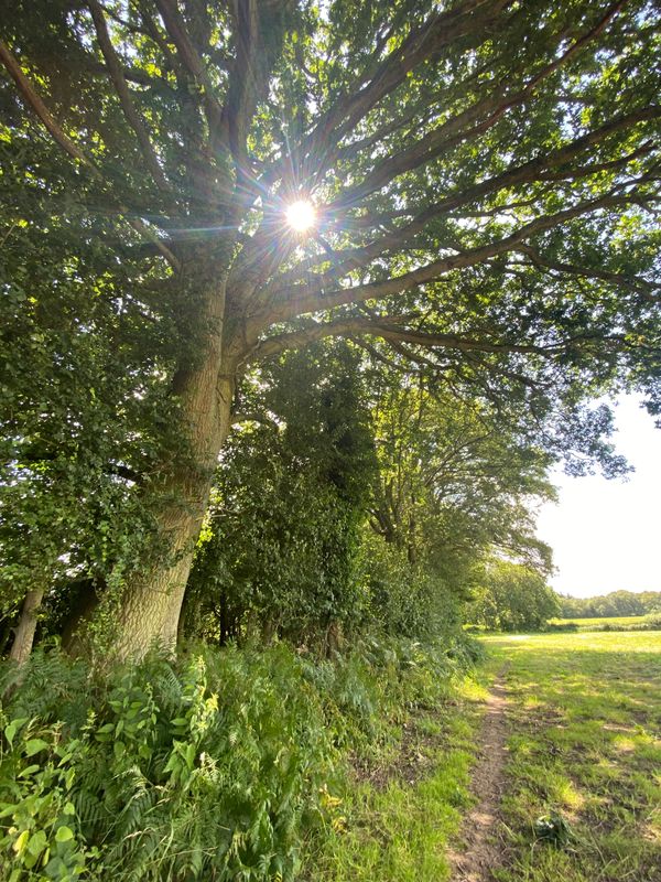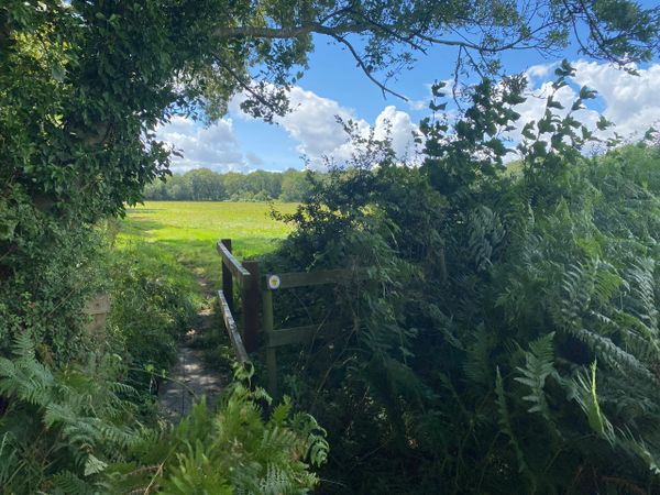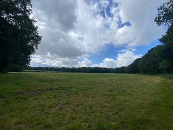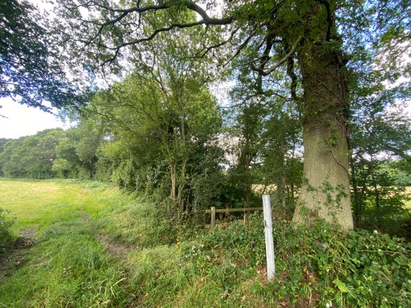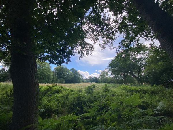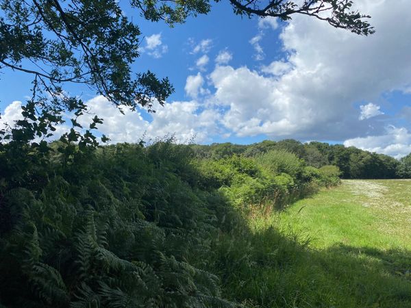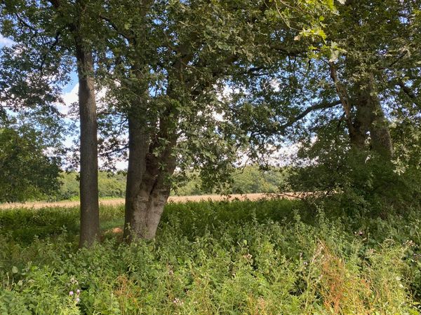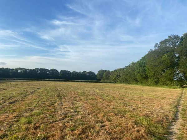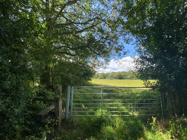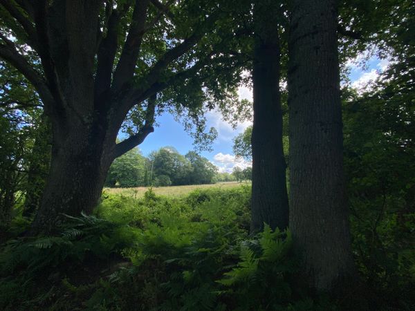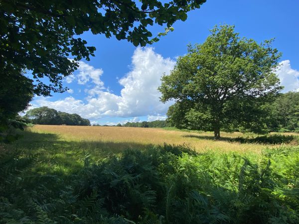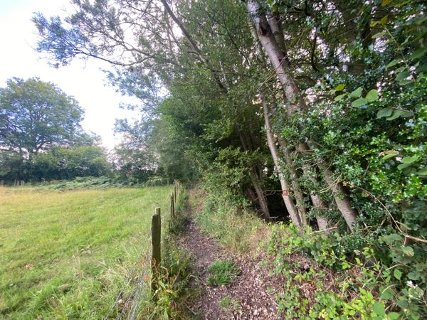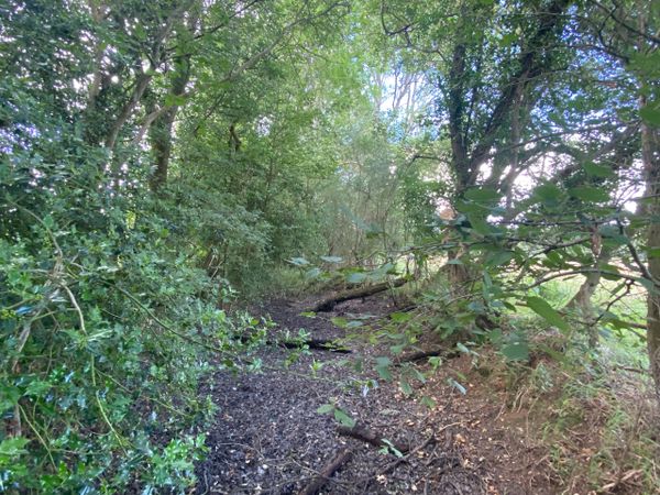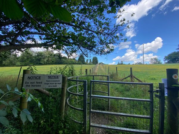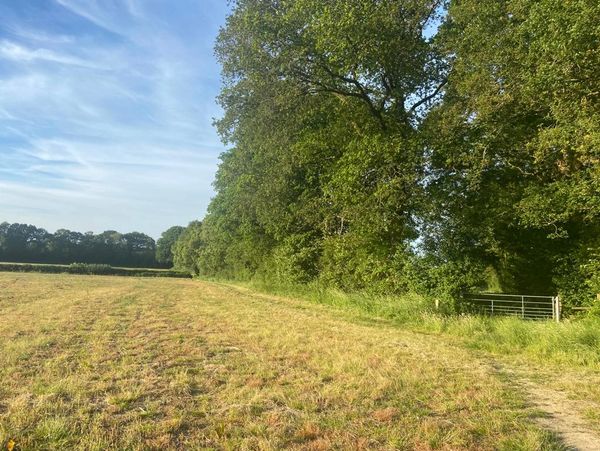 Photo (L): 21st June, 2023. Taken from the top of Ron Ward's Meadow (SSSI) looking south. An application site is on the other side of the first tree line at the south end of the meadow.